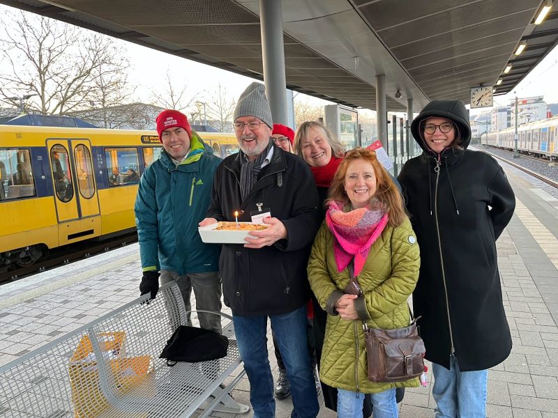 Mitglieder der SPD Leinfelden-Echterdingen verteilten am Montagmorgen, 17. Februar, in aller Frühe Infomaterialien am Bahnhof in Leinfelden. Mit dabei war auch unser Bundestagskandidat Nils Schmid, der als Außenpolitischer Sprecher der SPD-Fraktion ein wichtiges Amt inne hatte in der letzten Legislaturperiode und der u.a. in dieser Funktion auch ein wichtiger Berater für SPD-Parteivorsitzenden Lars Klingbeil ist. Auf dem Foto sind zu sehen: Nils Schmid, SPD-Kreisrat und Geburtstagskind Ulrich Bartels, Vorstandsmitglied Regina Gabriel (verdeckt), SPD-Stadträtin Barbara Sinner-Bartels, SPD-Vorstandsmitglied Annette Preuninger-Klaffke sowie Tülay Schmid. Auch unser Vorstandsmitglied Jens Rudat hat fleißig mitverteilt.