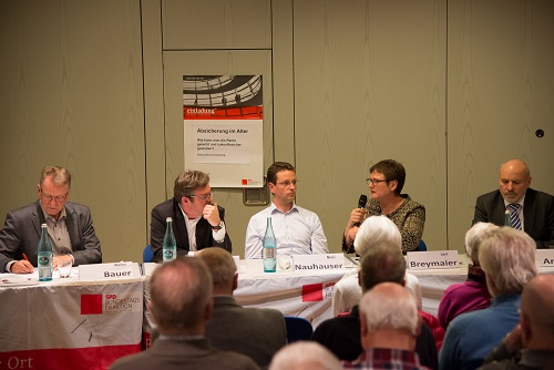 Das gesamte Podium war sich dementsprechend darüber einig, dass die gesetzliche Rentenversicherung der Kern der Altersvorsorge sei und auch bleiben solle. In der Diskussion mit dem Publikum, die vom Vorsitzenden der SPD-Gemeinderatsfraktion in Filderstadt Walter Bauer geleitet wurde, wurde dementsprechend heiß diskutiert. Angesprochen wurden verschiedene Möglichkeiten eines Modellwechsels, das Thema Direktversicherungen und die Stabilität des Rentensystems.