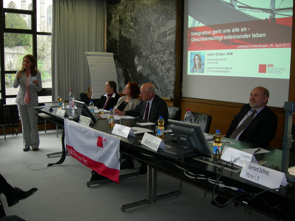 Amtsblattartikel vom 3. und 10. Mai 2013: Im Rahmen der SPD-Reihe „Fraktion vor Ort“ luden MdB Rainer Arnold und seine Fraktionskollegin Aydan Özoguz vor kurzem zum Zukunftsdialog „Integration geht uns alle an“ ins Rathaus Echterdingen. Das hochkarätig und bunt besetzte Podium diskutierte vor etwa 60 Zuhörern verschiedene Facetten einer gelingenden Integration.