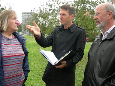 Amtsblattartikel vom 31.10.2014: Die SPD-Fraktion LE in Person von Erich Klauser (Foto: rechts), Gertrud Link, Barbara Sinner-Bartels (Foto: links) und Jens Zellmer traf sich vergangenen Samstag beim Bolzplatz Aicher-/Layhweg in Echterdingen mit zahlreichen Vertretern der Initiative „Rettet den Bolzplatz“ zum Gedankenaustausch.