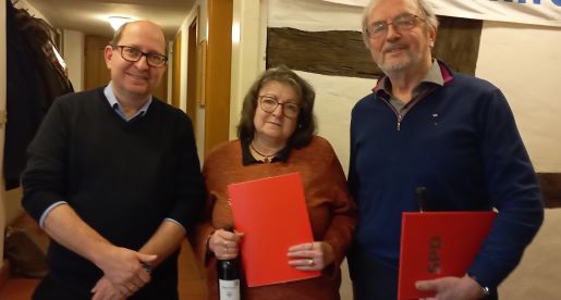 Bereits seit 40 Jahren ist unser Kreisrat Ulrich Bartels SPD-Mitglied: Er kam vor 24 Jahren als Nachrücker in den Kreistag Esslingen und vertritt dort seitdem durchgängig für die SPD L.-E. die Interessen der Bürgerinnen und Bürger im Wahlkreis. Seine Frau, unsere Stadträtin Barbara Sinner-Bartels, dankte Ulrich für seinen unermüdlichen Einsatz für die SPD in Stadt und Kreis, sei es an Parteiständen oder bei der Flyerverteilung in Wahlkämpfen. Eine gute Tradition ist, dass Ulrich Bartels den Wein für den Neujahrsempfang der Fraktion besorgt und auch persönlich ausschenkt. „Danke, dass du so fleißig warst und mir auch oft den Rücken frei gehalten hast“, lobte Barbara Sinner-Bartels das Engagement ihres Mannes. Dieser meinte, er habe vom Zusammenhalt und den Freundschaften innerhalb des SPD-Ortsvereins auch persönlich stark profitiert.